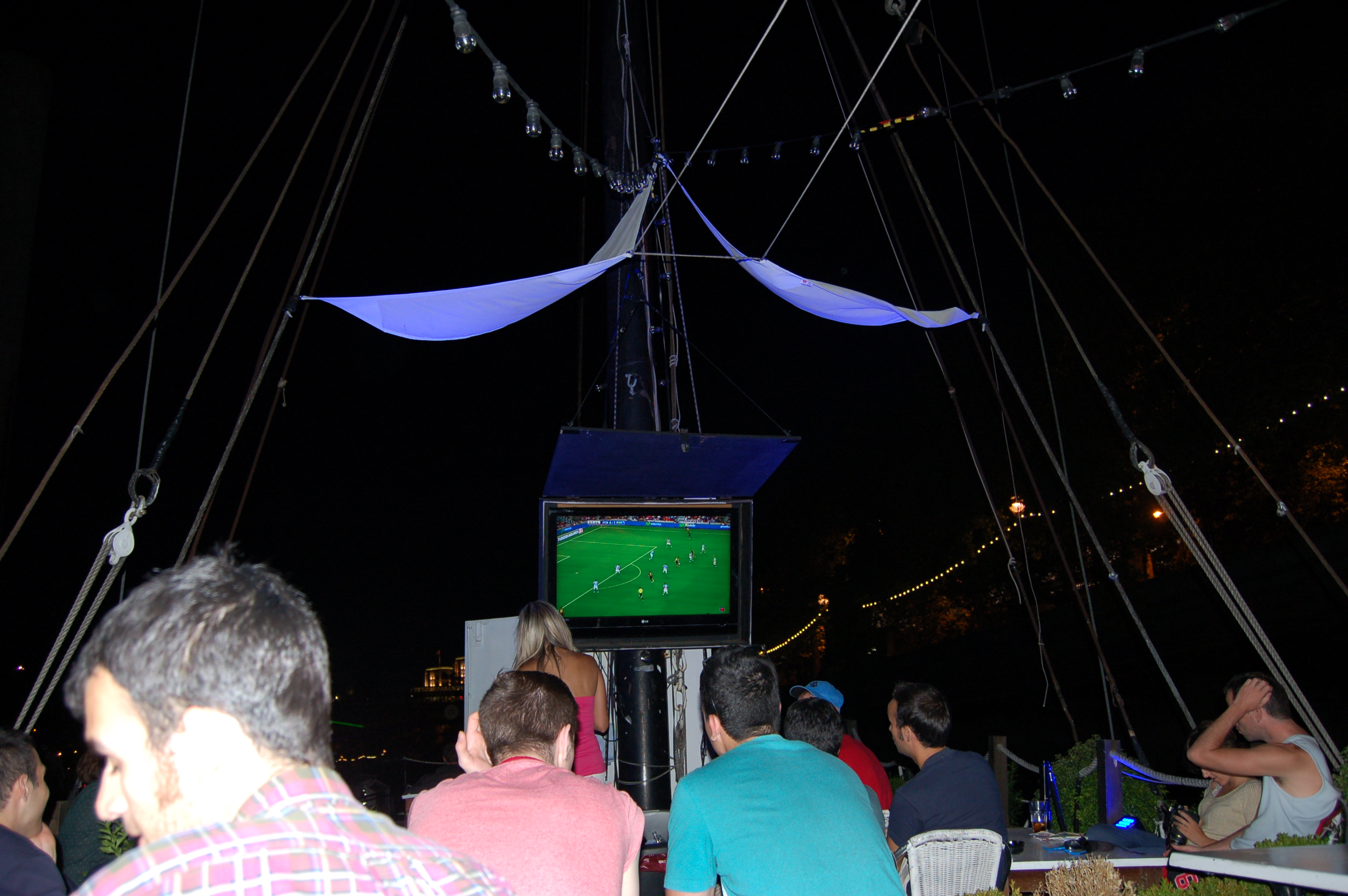 L’ambient, no del tot festiu, potser perquè encara no hi ha prou emoció a la Lliga? Asseguts a la fresca, teníem l’Estrella (no nosaltres, que la Carlsberg era més barata), les vistes precioses i de catalans n’hi havia uns quants.