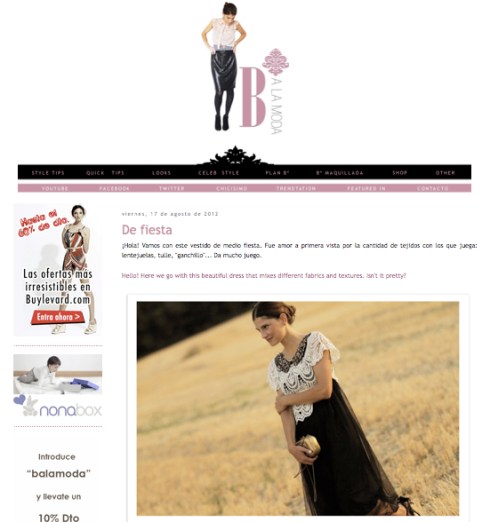 Y aquí, entre todos, el que no me pierdo nunca, nunca, nunca es Balamoda. Me encanta esta chica, Belén Canalejo. Fresca, divertida y natural. Comparte proyecto bloguero con su marido, (y sus tres hijos y padres y tías….) que añade el toque masculino con sus comentarios.