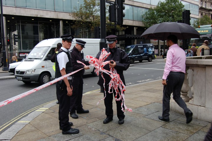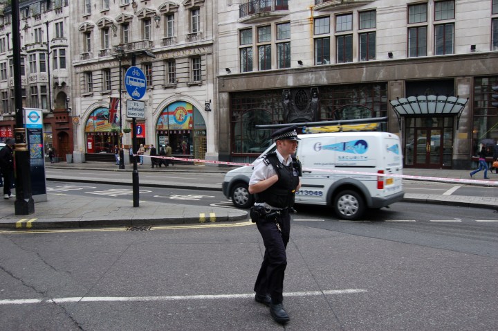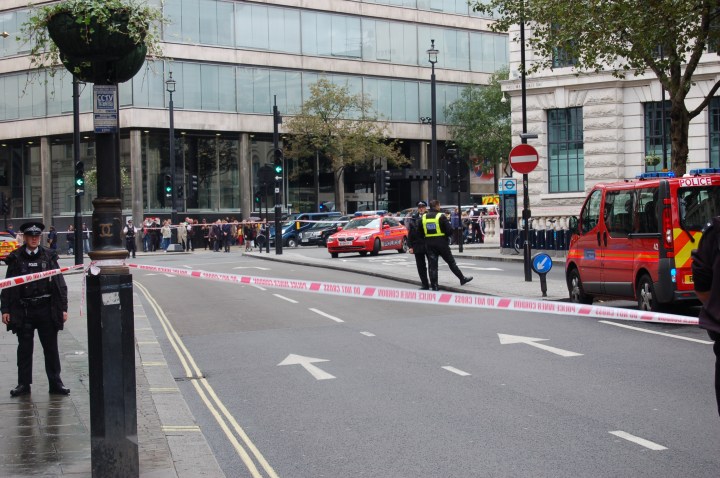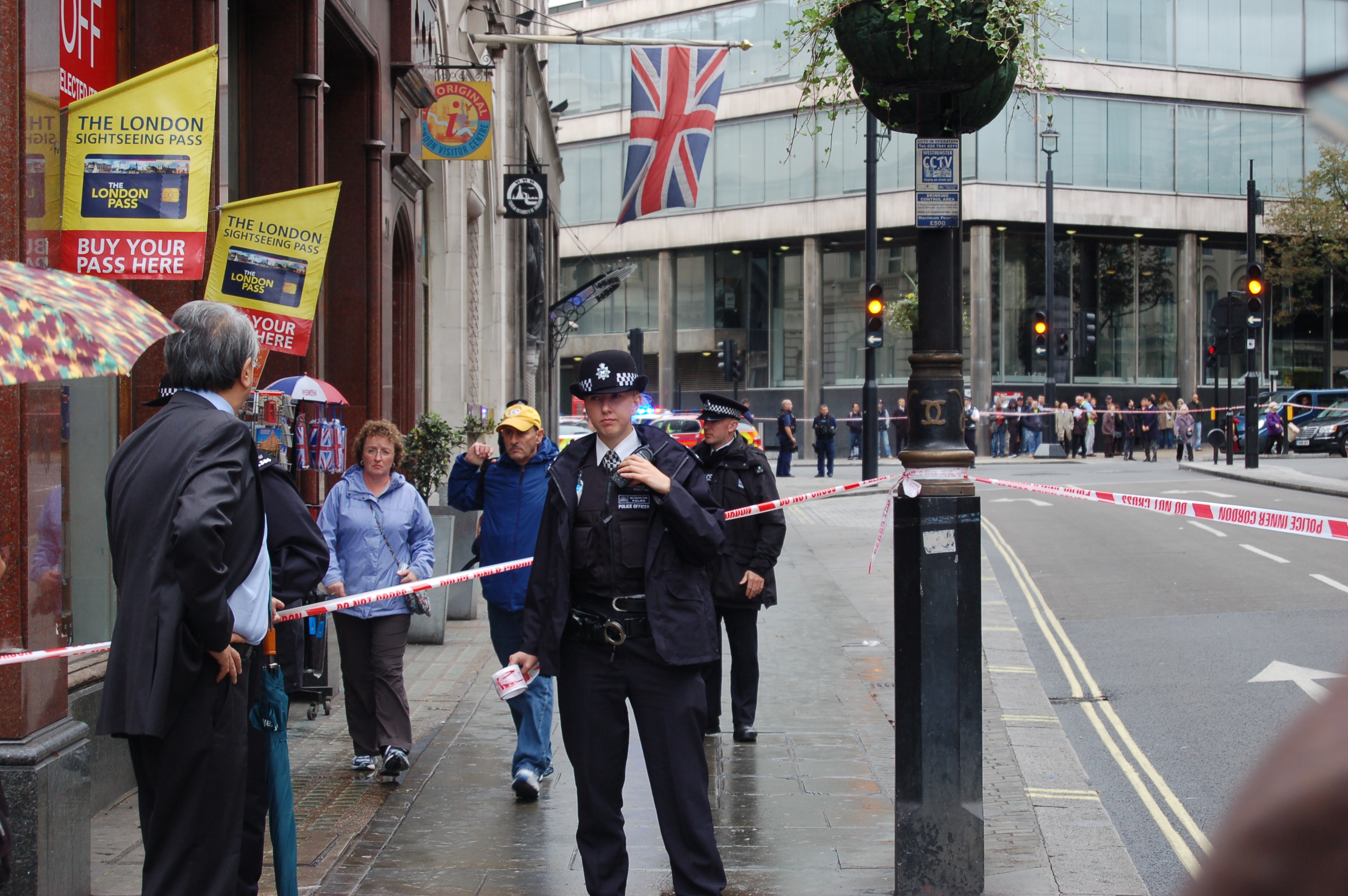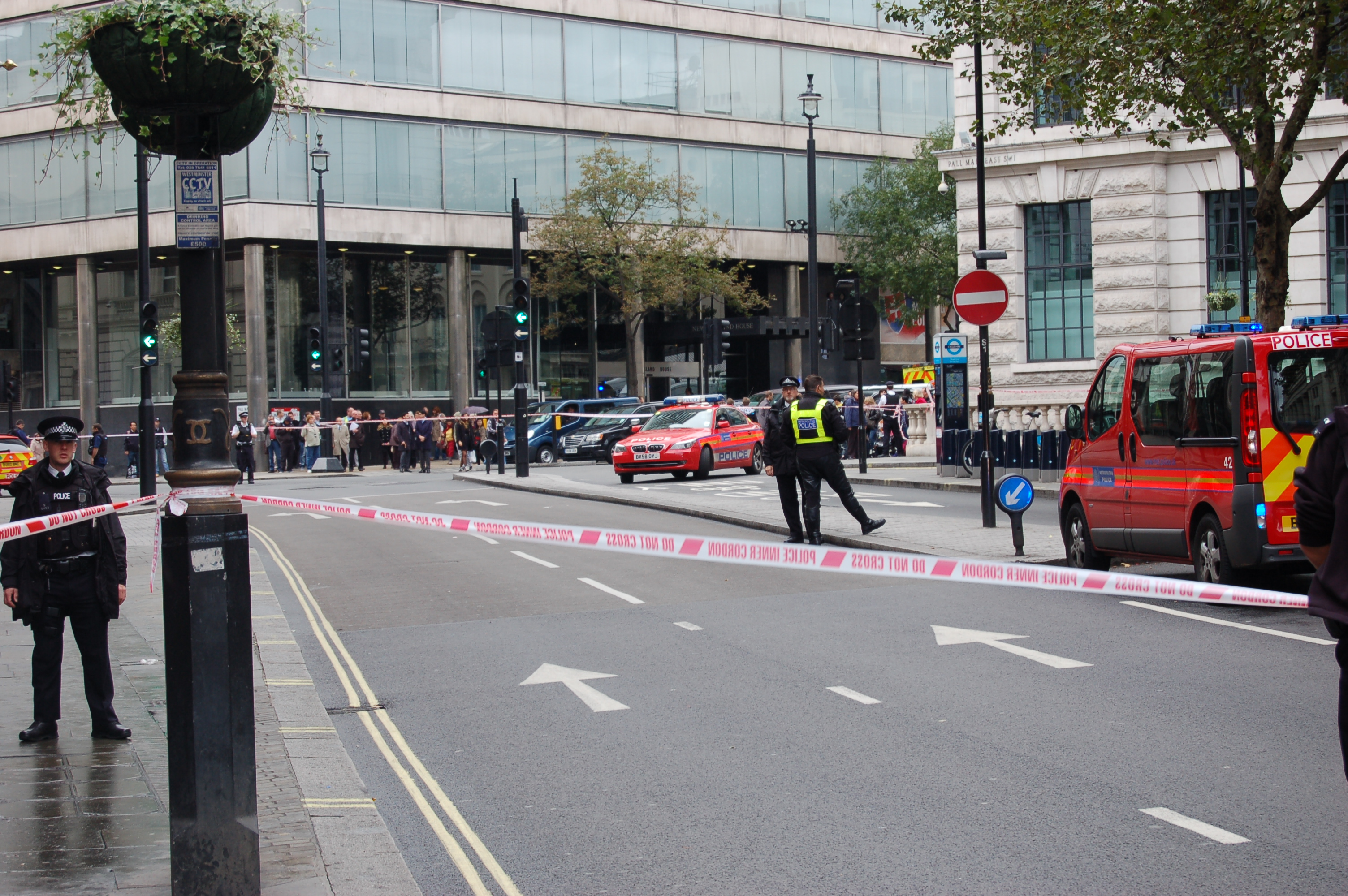 La sorpresa me la llevé cuando bajando por Haymarket St. me encontré con dos camiones de bomberos, dos ambulancias y coches de policía ahí y bajando hacía Pall Mall St.