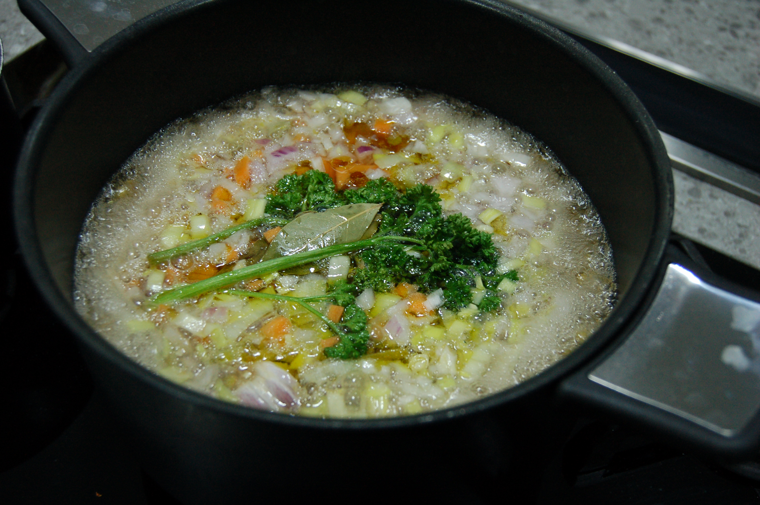 Calcula 100g de lentejas secas por persona (aprox.). Se lavan muy bien y se ponen en agua fría que las cubra un dedo por lo menos. Se echa zanahoria picada, bastante cebolla (1 grande para 400 g) picada, una cabeza de ajo pequeña entera y sin pelar, bien  lavada, una hoja de laurel, un ramito de perejil, un trozo de tomate, un buen chorro de aceite de oliva.