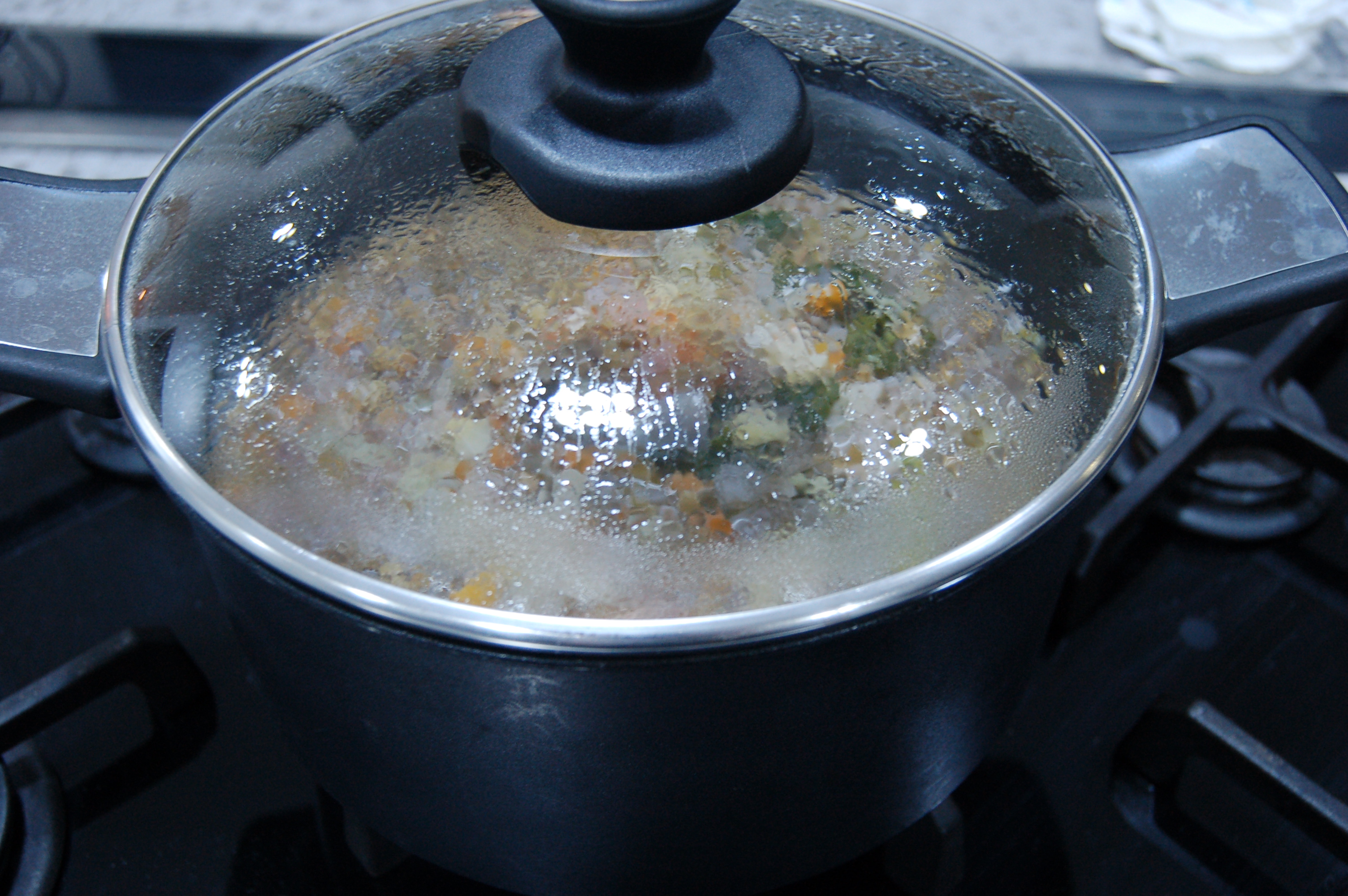 Las pones a fuego alto y cuando empiecen a hervir, al ratito, bajas la temperatura. Vigila que estén  bien de agua y si tienes que añadirle, la hierves y la echas hirviendo para que las lentejas no rompan el hervor. Cuando han hervido un poco echas una patatita bien cortadita y un puñadito de arroz, procurando que no rompan el hervor las lentejas. Casi al final, cortas unos trocitos de chorizo y los dejas hervir unos cinco minutos o lo que creas y ya están.