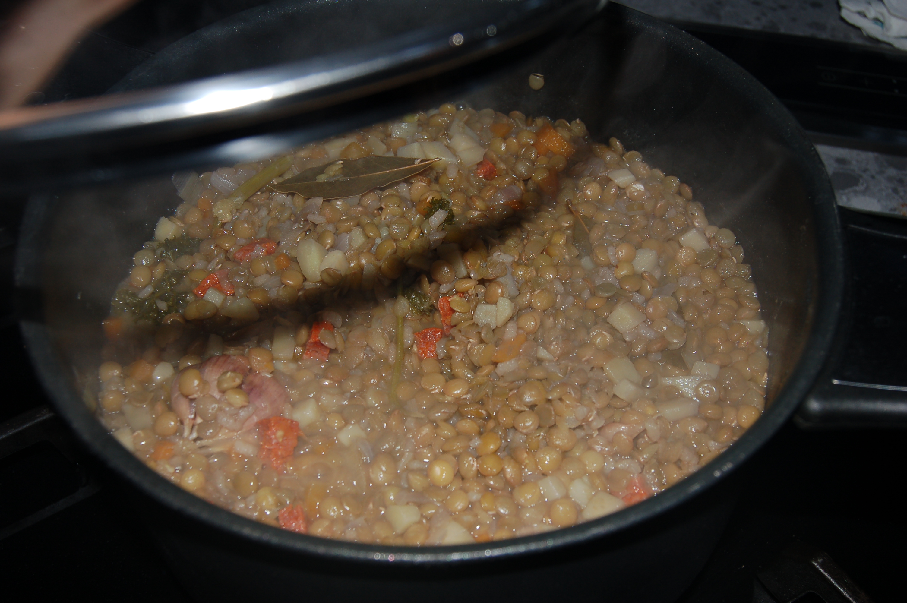 Como he podido, he hecho el intento. Poco que ver con las suyas. Pedí que me compraran los ingredientes y creo que las lentejas no eran las adecuadas, y han quedado muy blandas, pero es que aquí no tienen tantas legumbres en el súper. El paquete ponían Green Lentils, pero en España creo que basta con LENTEJAS. Hablando en serio, las pequeñas son las mejores.
