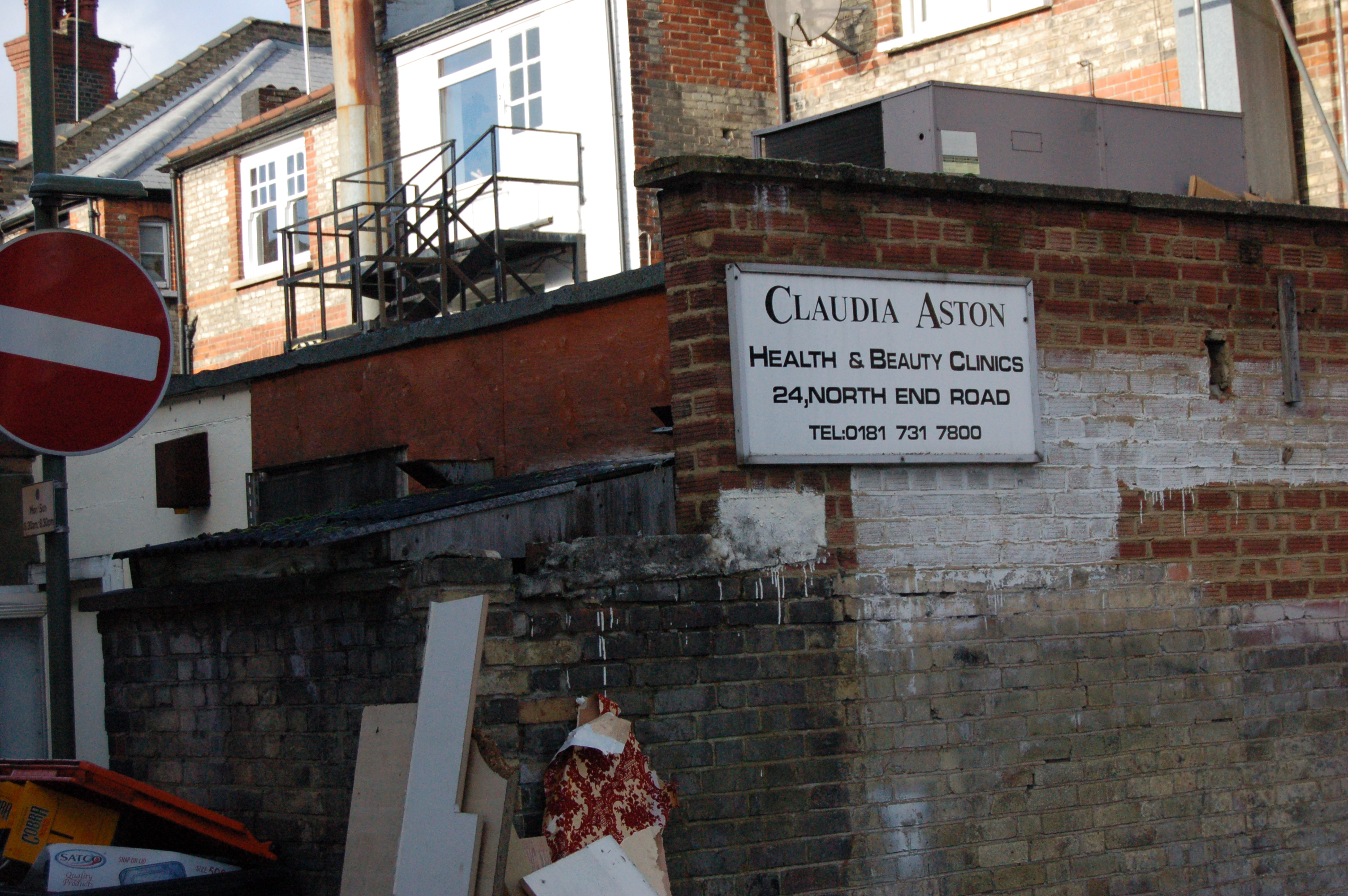 Se encuentra en un callejón pestilente, mugriento, lúgubre, con los traseros de edificios al aire. Y se atreven a poner ese cartel anunciando salud y belleza. ¿Qué tipo de broma es esa?