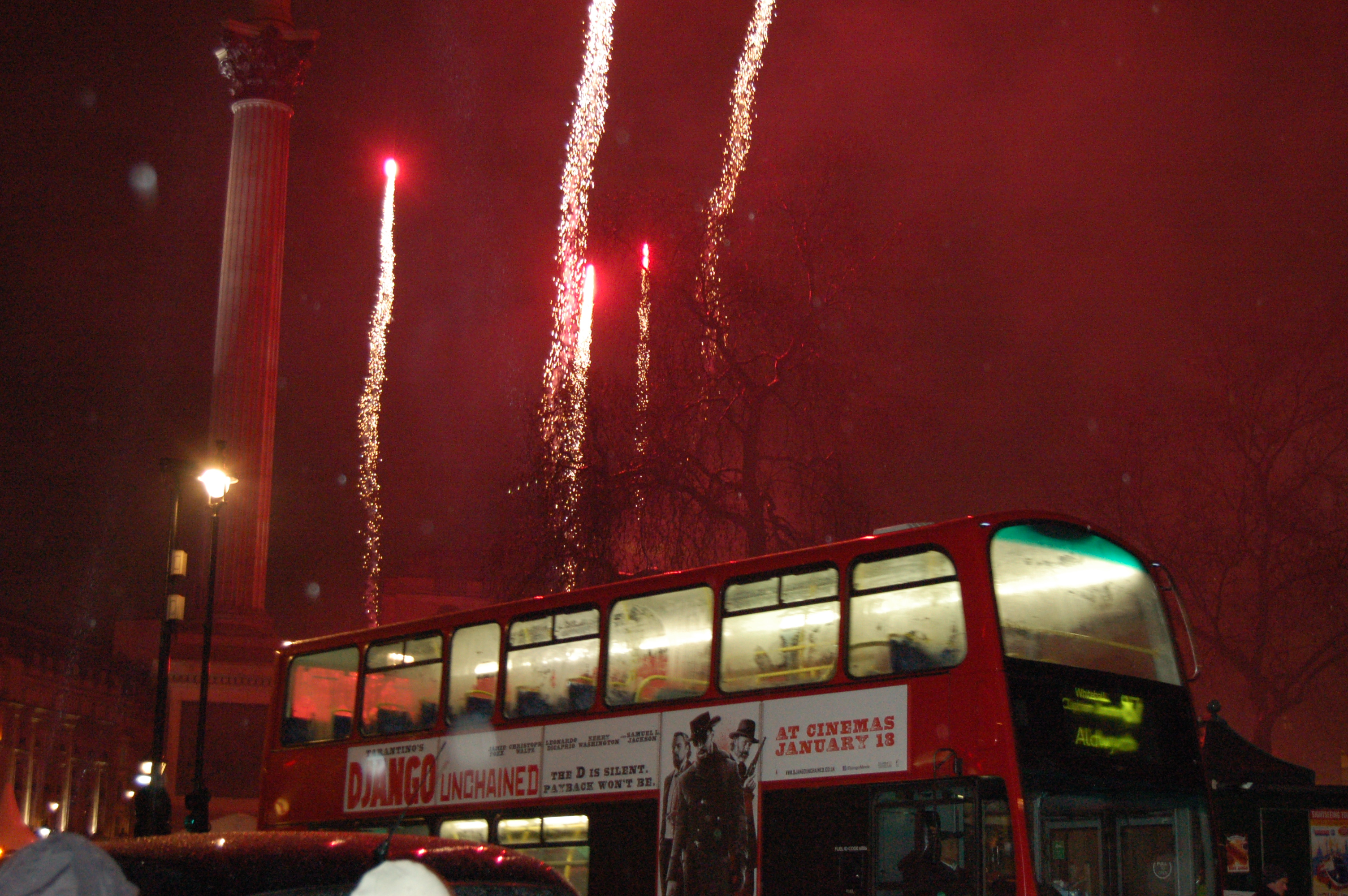 Después de un largo rato tomando un hot chocolate & muffin, fuegos artificiales en Trafalgar Square para rematar.