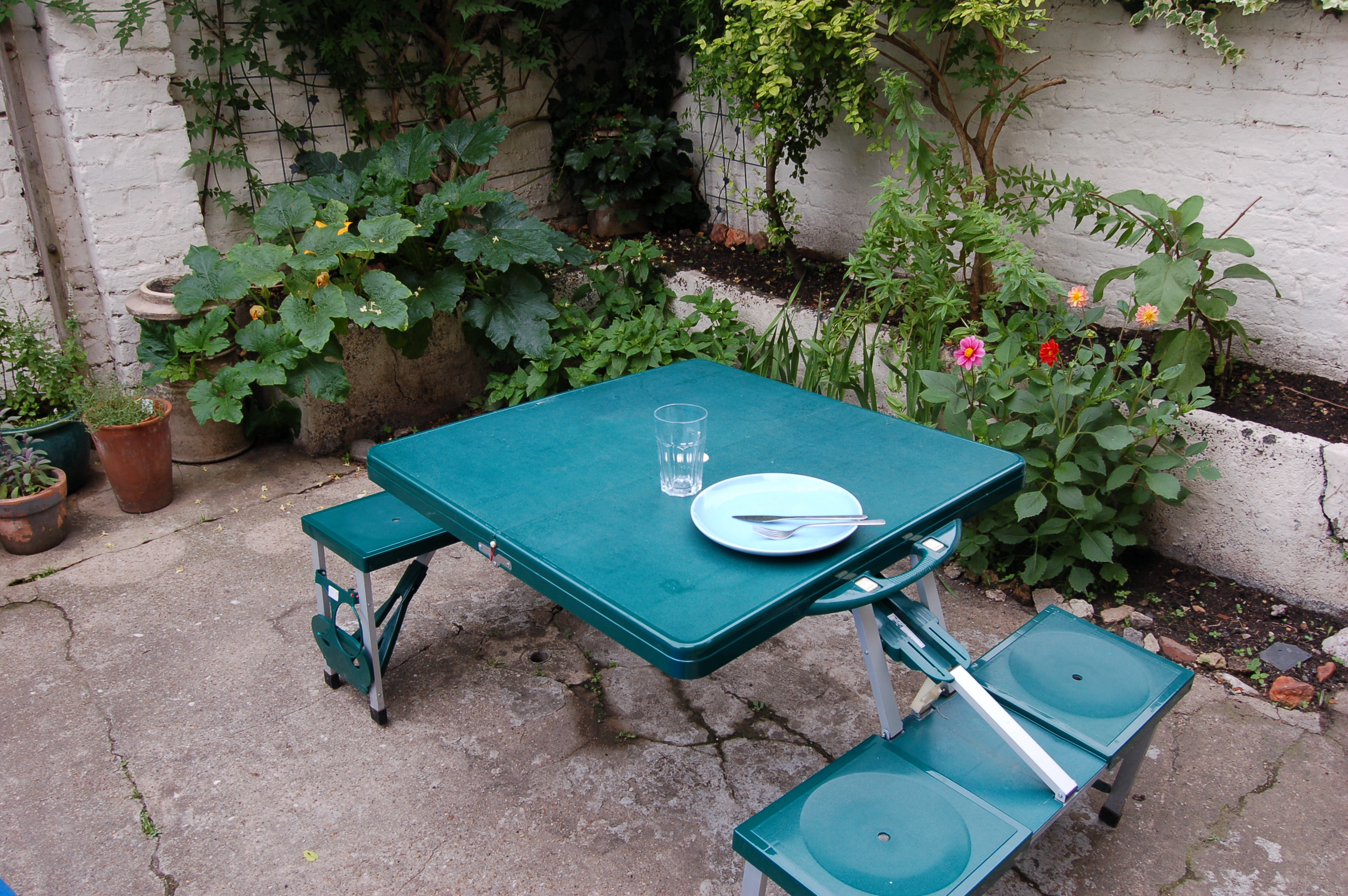 To eat, study or just read in the backyard. When the rays of the weak sun want to please us through all those clouds, it just feels GOOD, VERY GOOD.