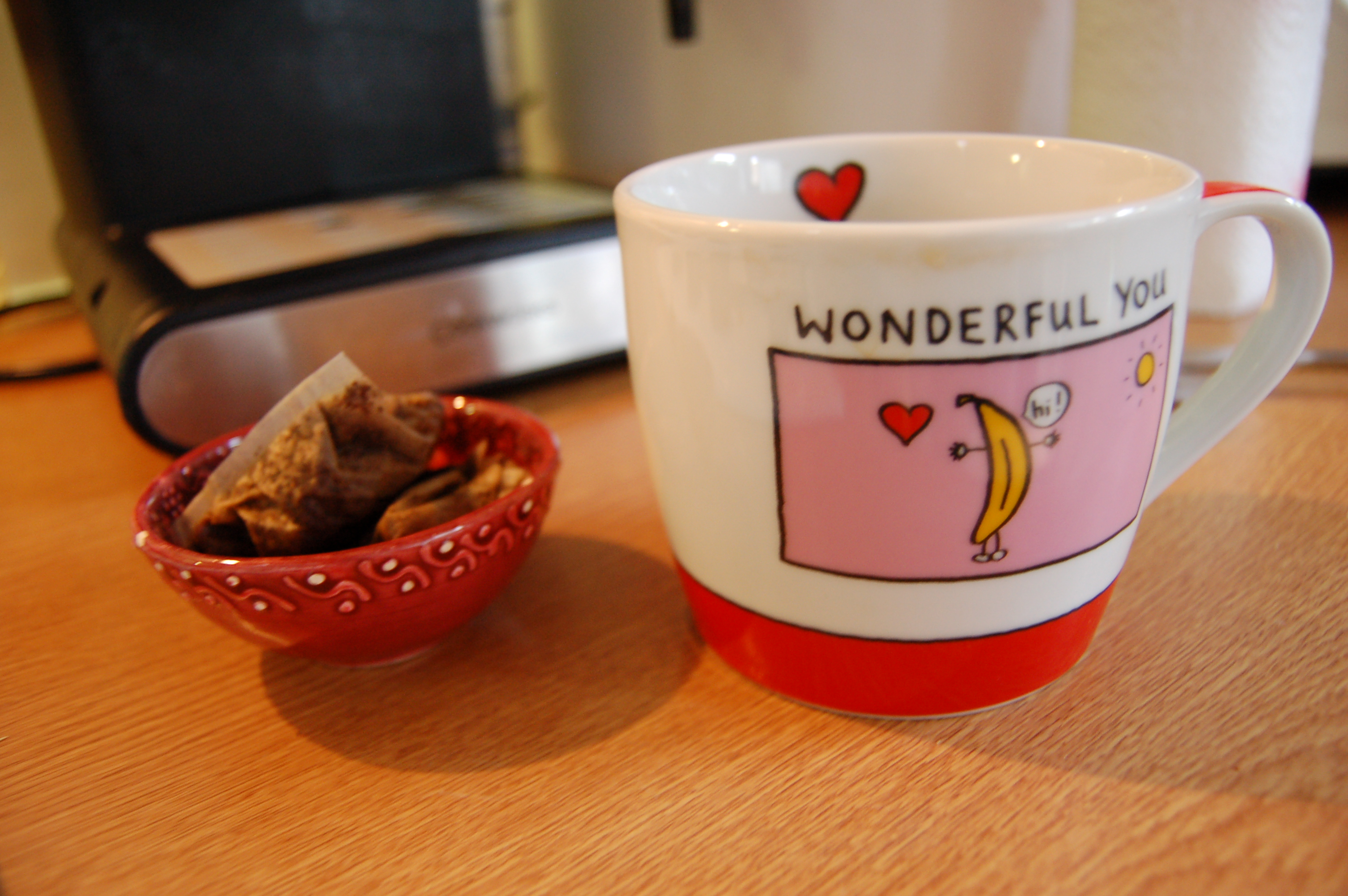 The Tea Ritual every morning. Since I came back from my holiday in Spain, with my super mug, Carolina’s gift. I think of her, it puts me in a good mood and activates my sleepy brain.