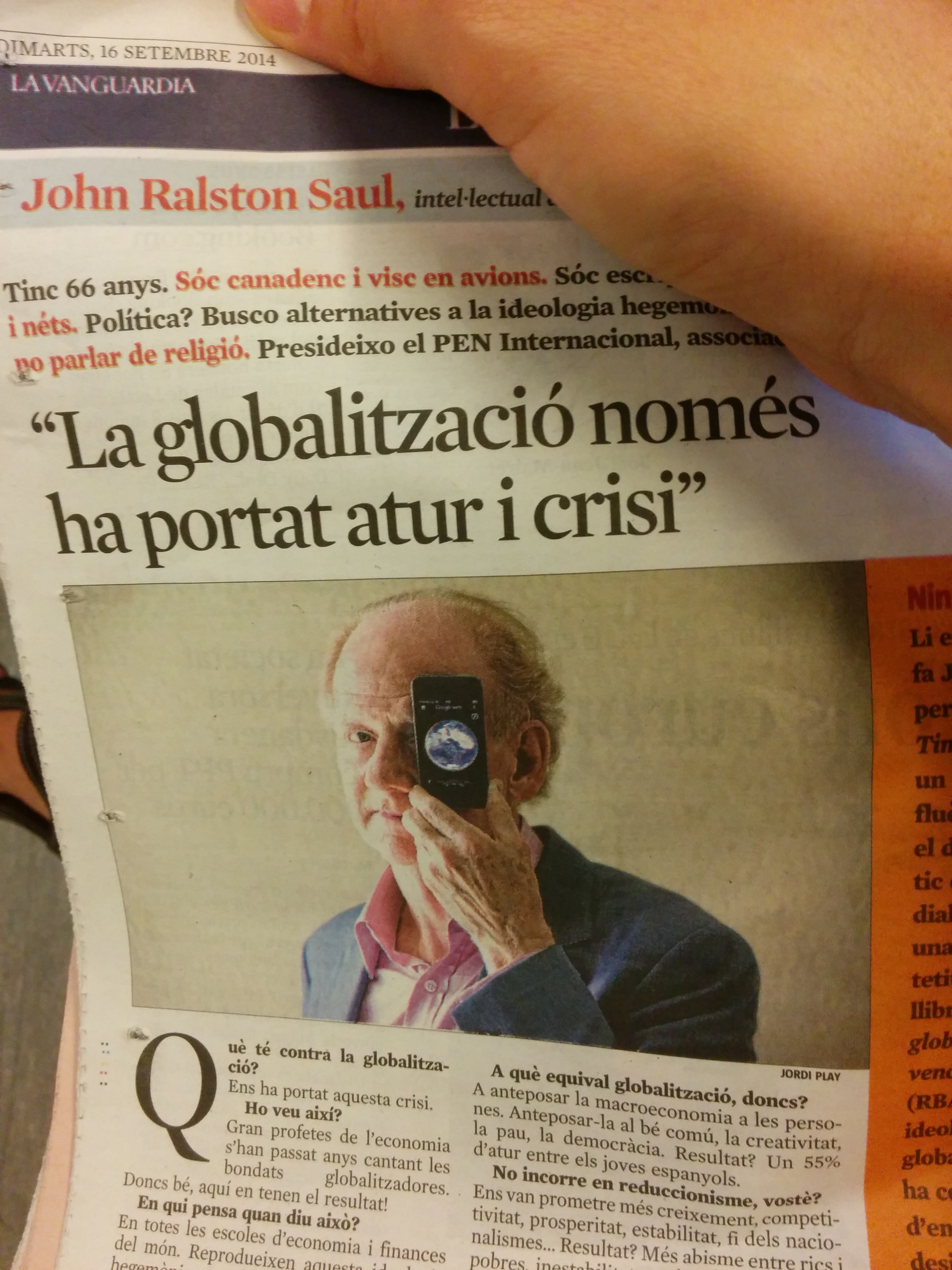 La Contra de La Vanguardia  where John Ralston Saul stands: “Globalitzation just brought us crisis and unemployement”. Has it, really?