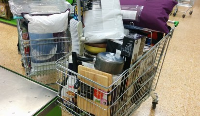 Here are the main things that you might need to get in your first shopping: cleaning products, basic kitchen appliances, houseware (all sorts of things), food (you’ll get very hungry and thirsty).