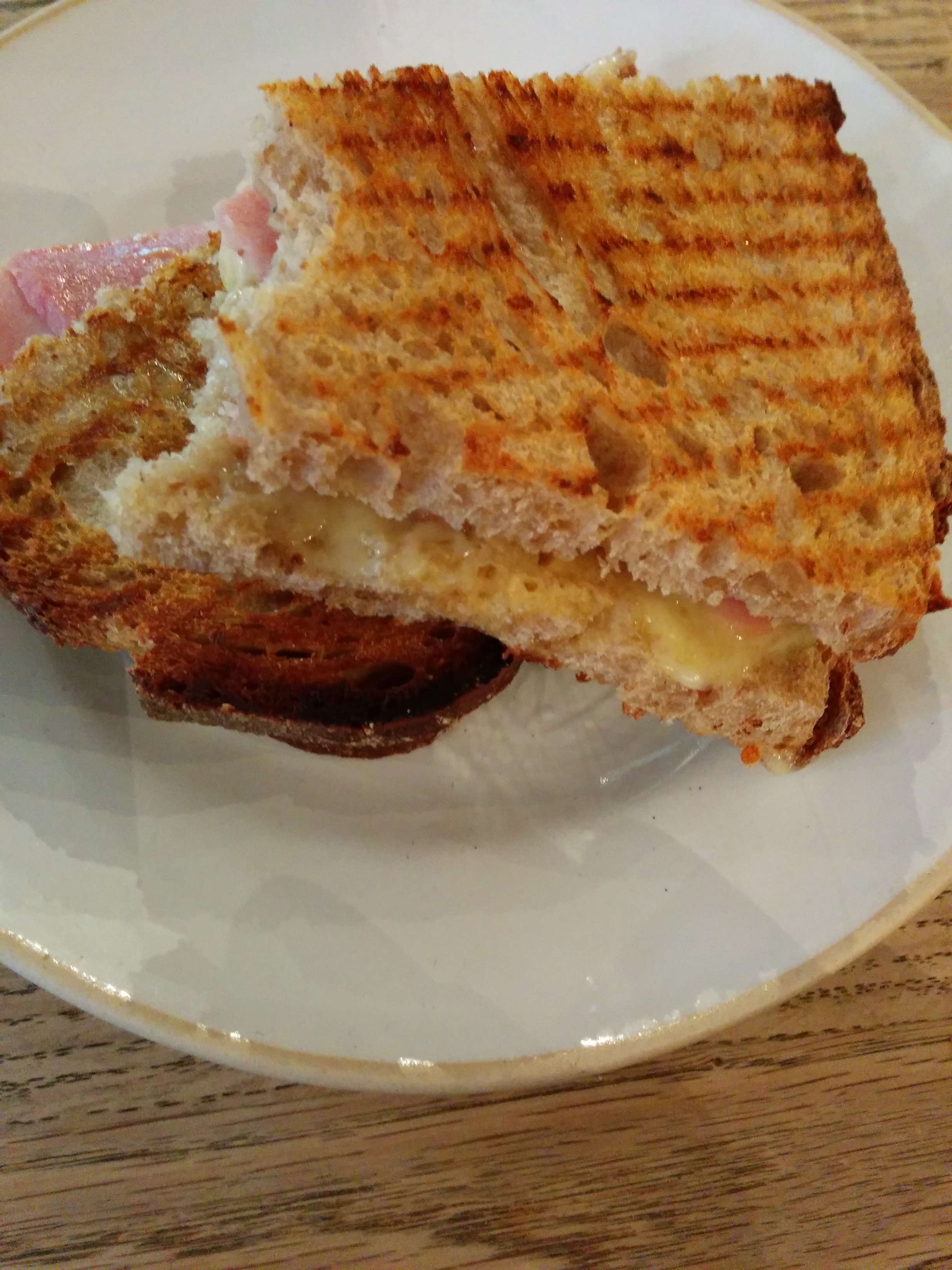 Cheese&ham toastie and cappuccino.