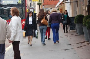 Picadilly Street: Creo que este día iba con mi amiga M. y justo saqué la cámara porque me pidió si podía echarle una foto a un aparador que se encontraba a la izquierda, repleto de variedades de pasta. Por eso casi se me escapa la mujer yeyé de las flores verdes. Menuda.